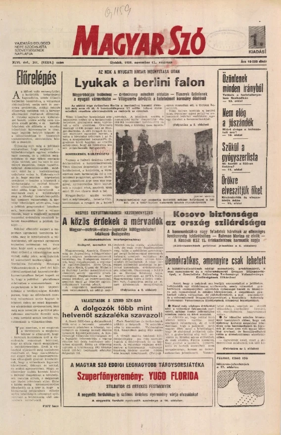 Magyar Szó, 46. évf. 1989. november 12. 311. sz. 1–32. oldal