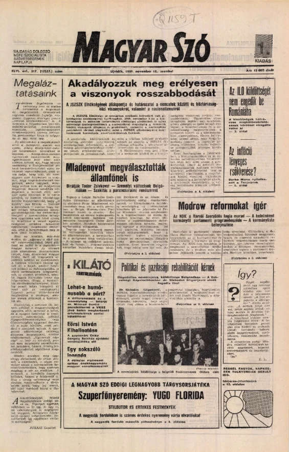 Magyar Szó, 46. évf. 1989. november 18. 317. sz. 1–28. oldal