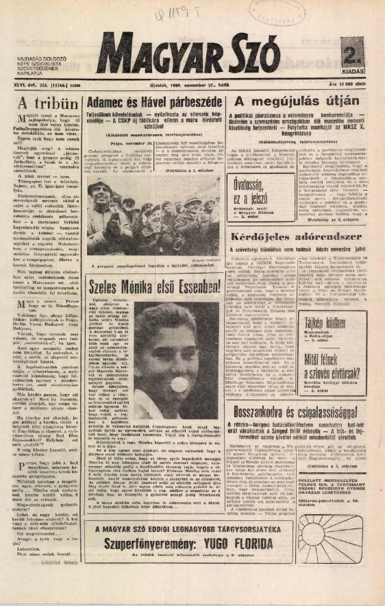 Magyar Szó, 46. évf. 1989. november 27. 326. sz. 1–20. oldal