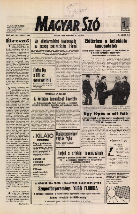 Magyar Szó, 46. évf. 1989. november 4. 303. sz. 1–28. oldal