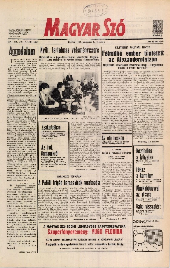 Magyar Szó, 46. évf. 1989. november 5. 304. sz.
