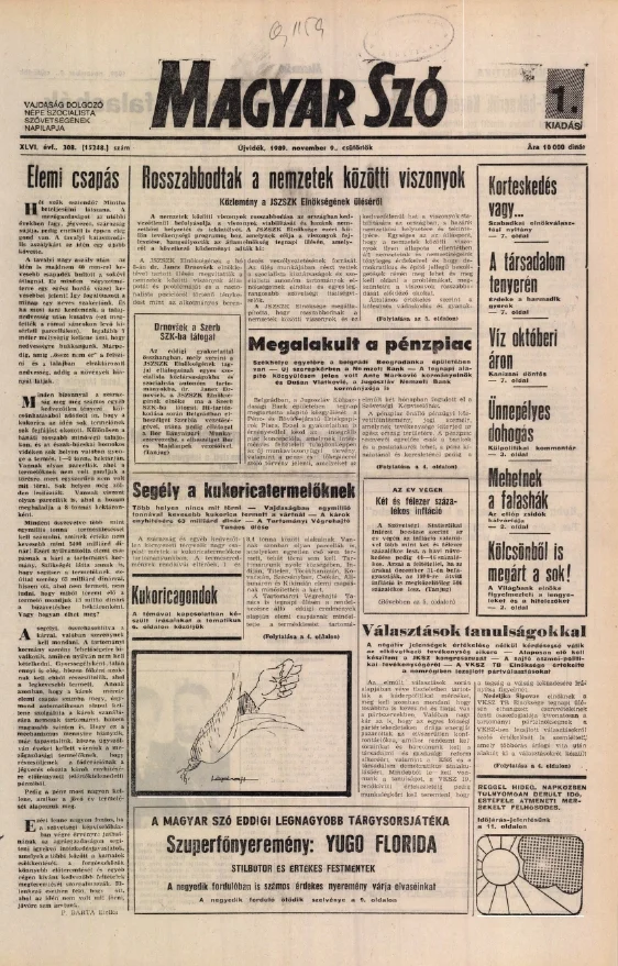 Magyar Szó, 46. évf. 1989. november 9. 308. sz. 1–16. oldal