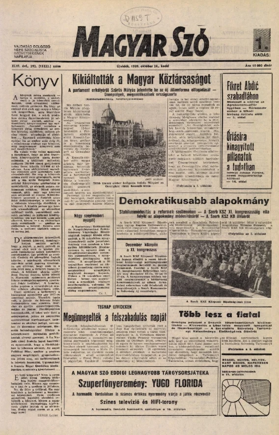 Magyar Szó, 46. évf. 1989. október 24. 292. sz. 1–16. oldal