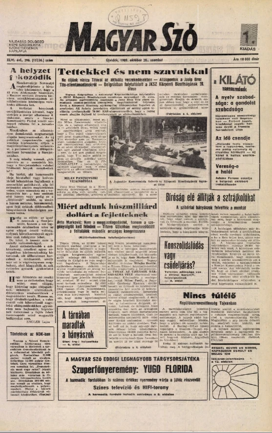 Magyar Szó, 46. évf. 1989. október 28. 296. sz. 1–28. oldal