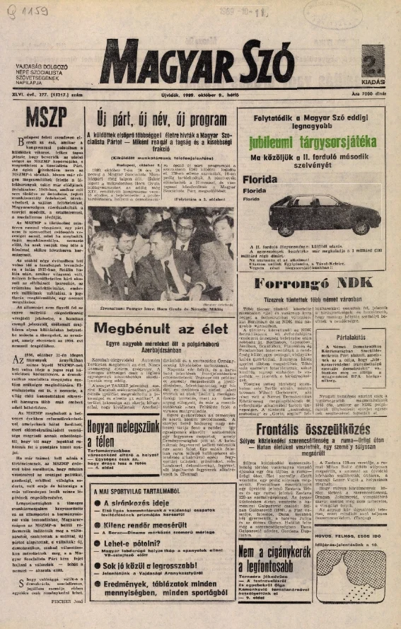 Magyar Szó, 46. évf. 1989. október 9. 277. sz. 1–20. oldal