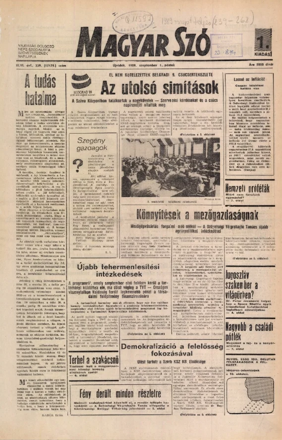 Magyar Szó, 46. évf. 1989. szeptember 1. 239. sz. 1–20. oldal