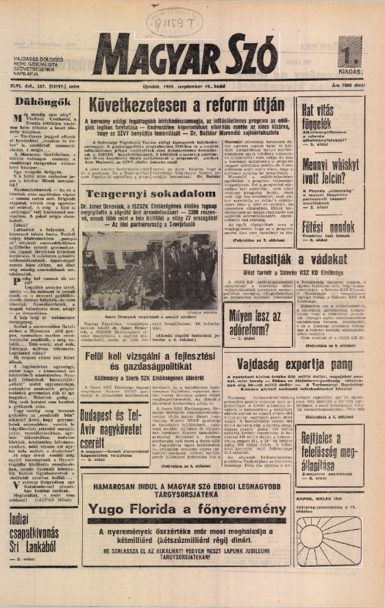 Magyar Szó, 46. évf. 1989. szeptember 19. 257. sz. 1–16. oldal
