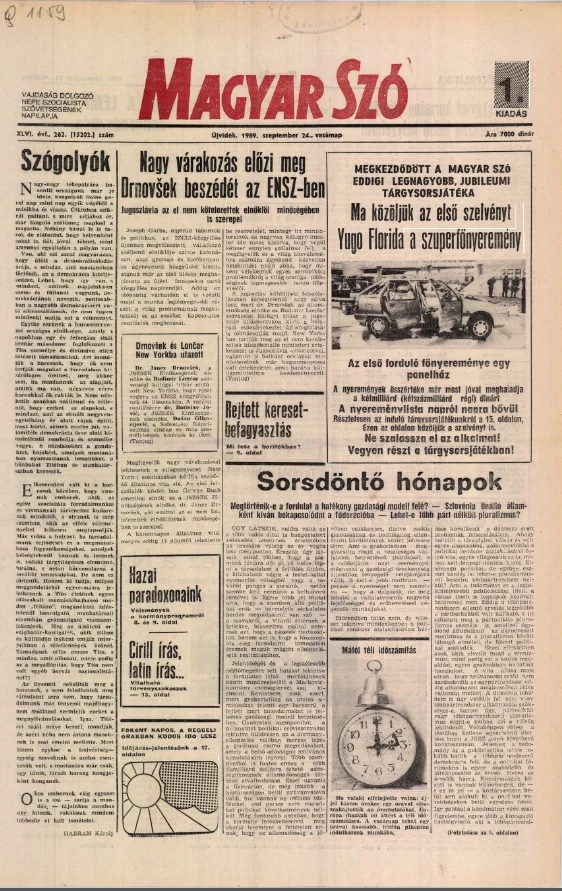 Magyar Szó, 46. évf. 1989. szeptember 24. 262. sz. 1–32. oldal