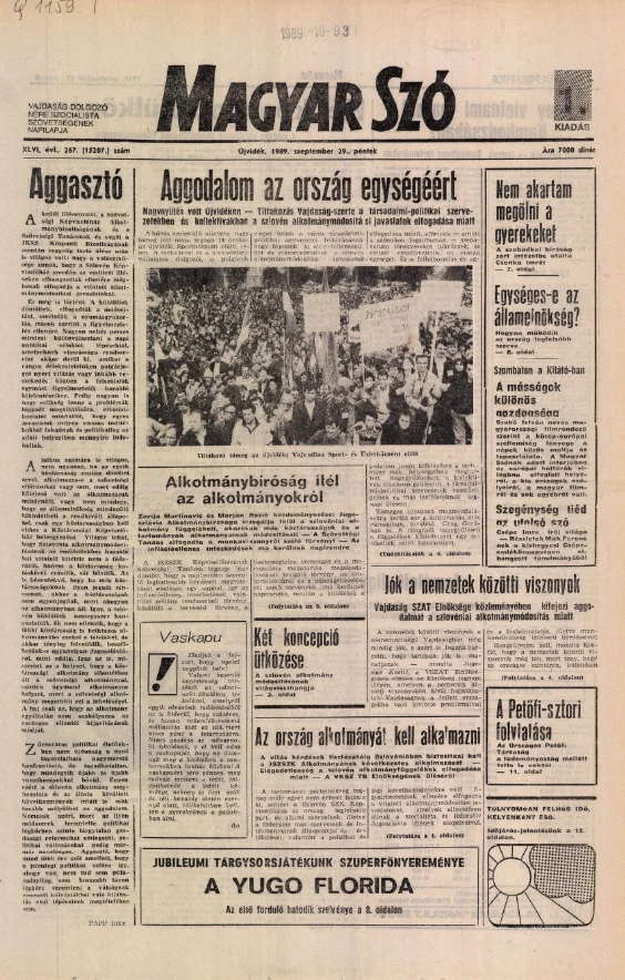 Magyar Szó, 46. évf. 1989. szeptember 29. 267. sz. 1–20. oldal