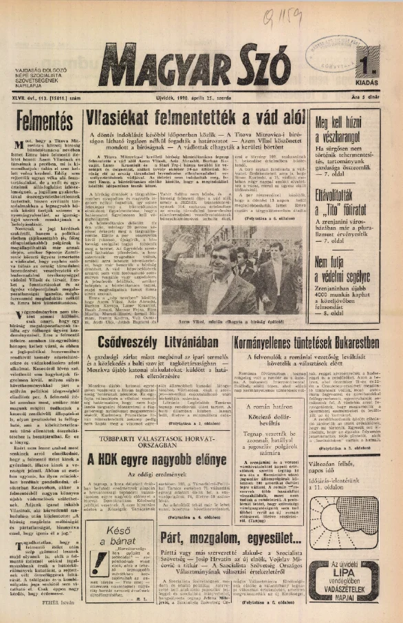 Magyar Szó, 47. évf. 1990. április 25. 113. sz. 1–20. oldal