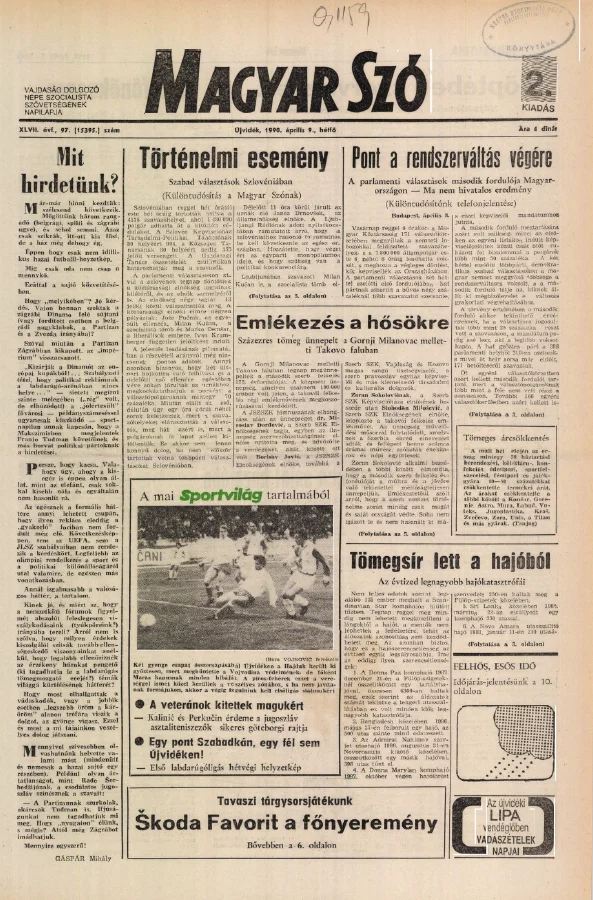 Magyar Szó, 47. évf. 1990. április 9. 97. sz. 1–20. oldal