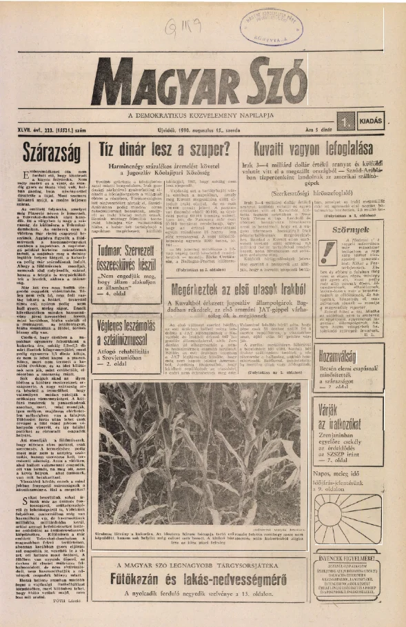 Magyar Szó, 47. évf. 1990. augusztus 15. 223. sz. 1–16. oldal