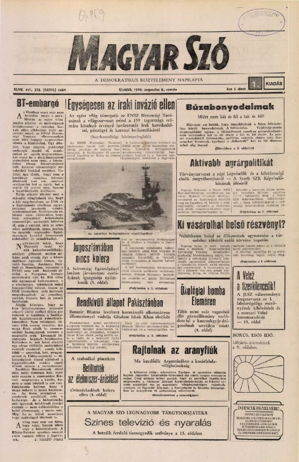 Magyar Szó, 47. évf. 1990. augusztus 8. 216. sz. 1–16. oldal