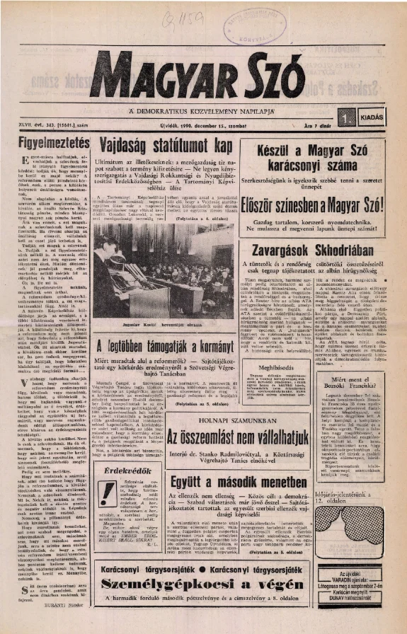 Magyar Szó, 47. évf. 1990. december 15. 343. sz. 1–24. oldal