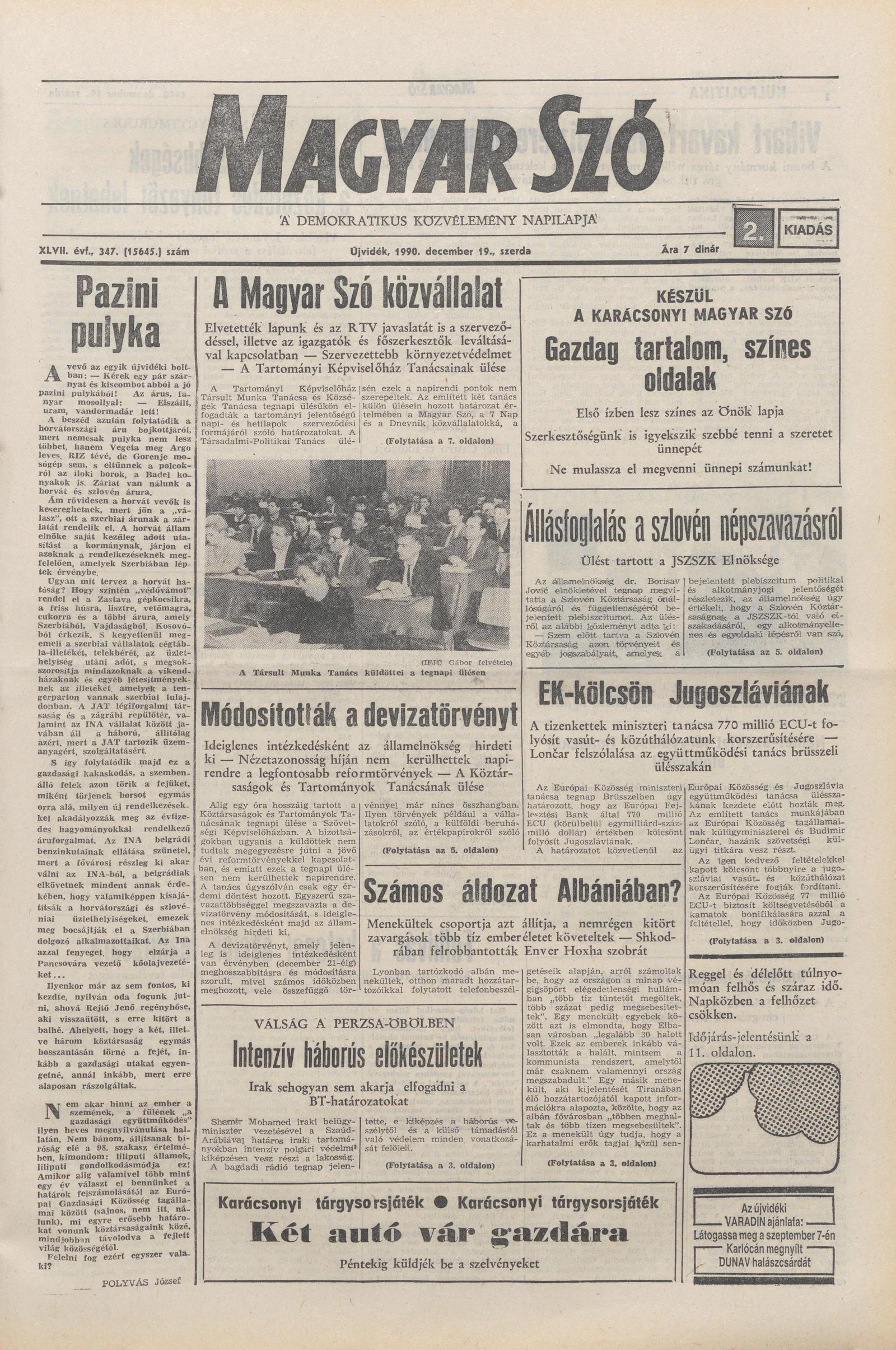 Magyar Szó, 47. évf. 1990. december 19. 347. sz. 1–20. oldal