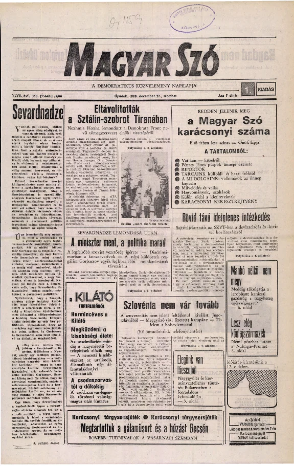 Magyar Szó, 47. évf. 1990. december 22. 350. sz. 1–24. oldal