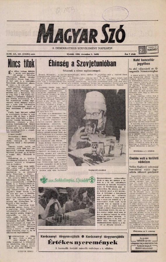 Magyar Szó, 47. évf. 1990. december 3. 331. sz. 1–20. oldal