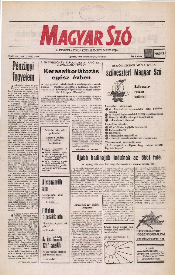 Magyar Szó, 47. évf. 1990. december 30. 358. sz. 1–28. oldal