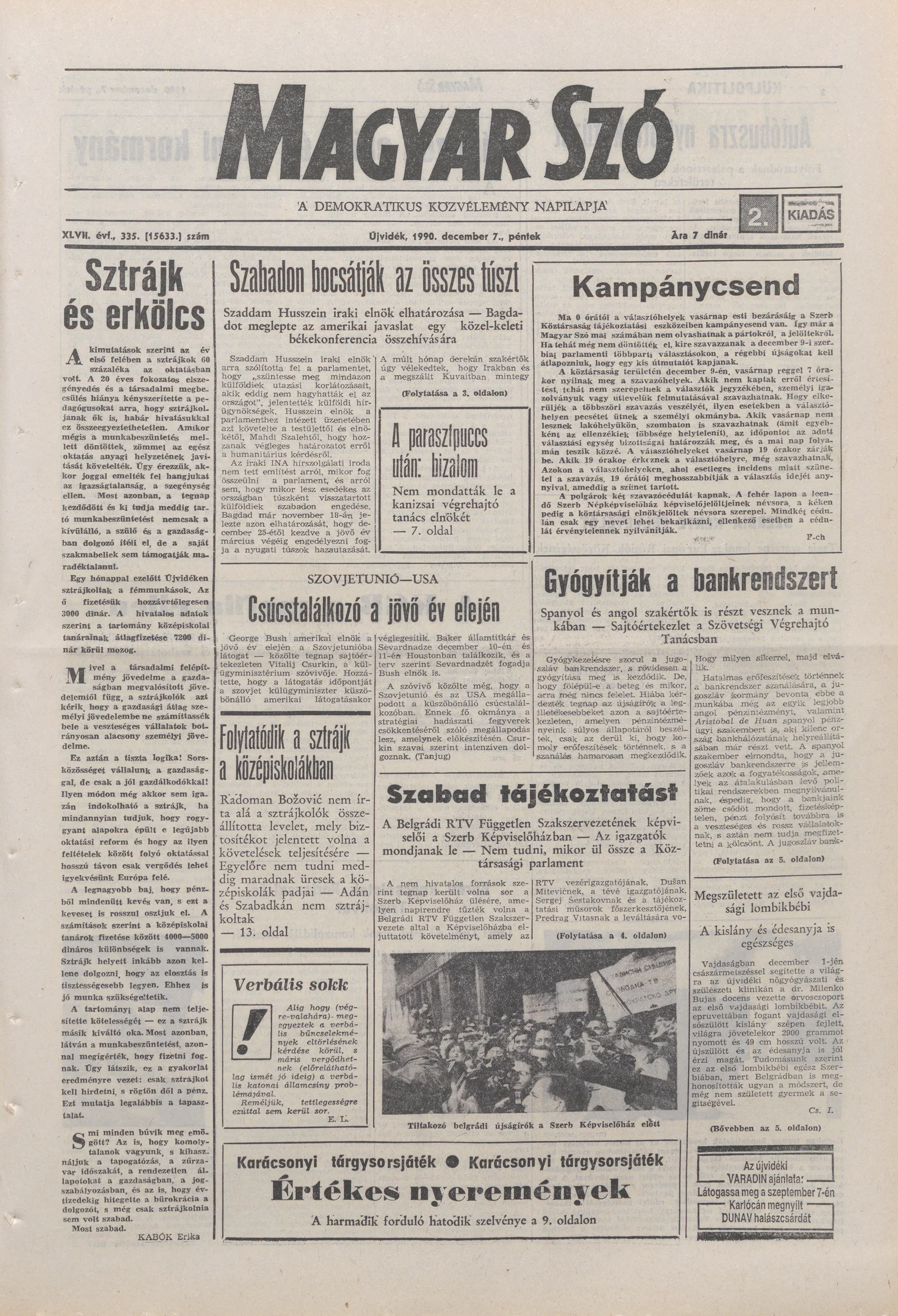 Magyar Szó, 47. évf. 1990. december 7. 335. sz. 1–20. oldal