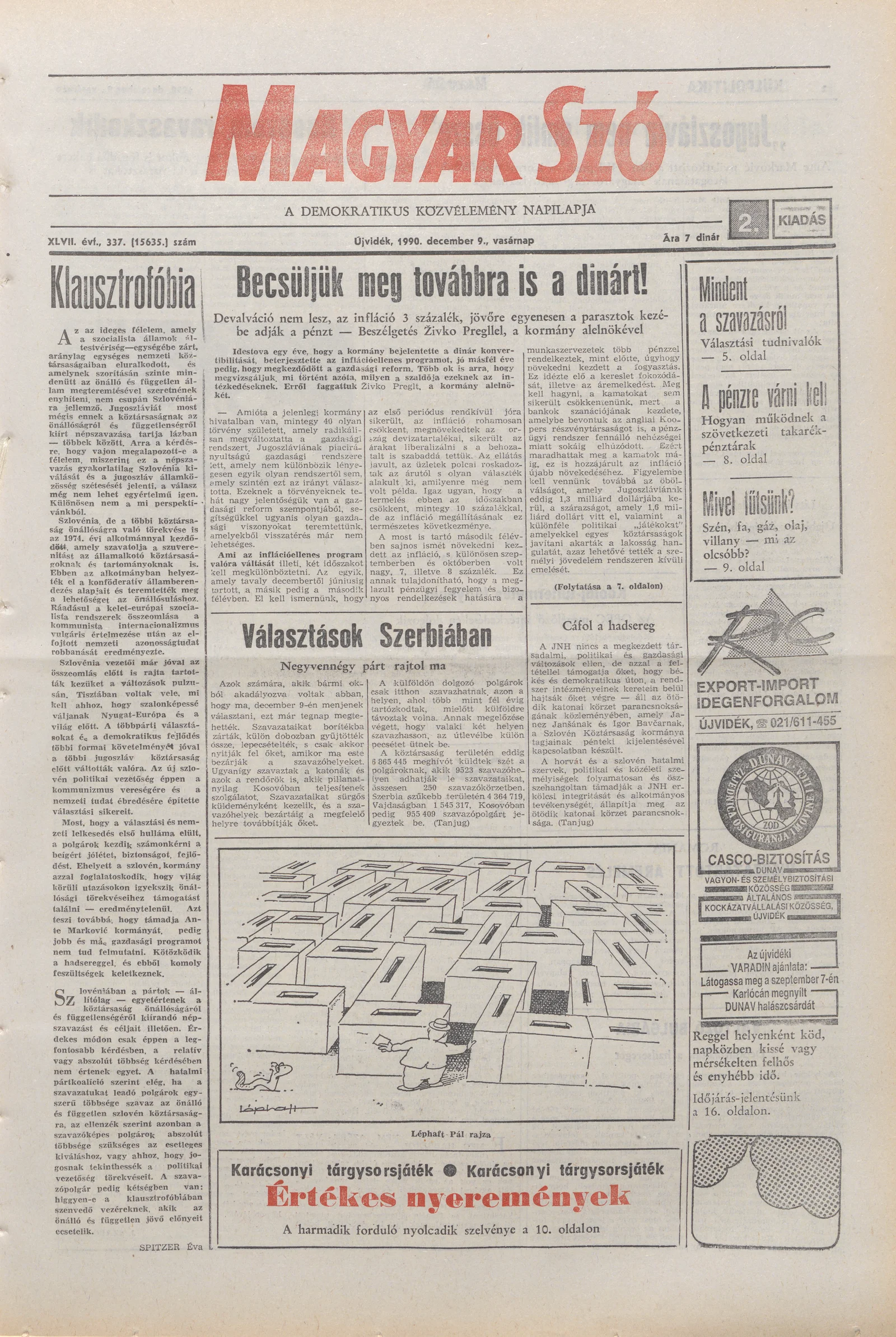Magyar Szó, 47. évf. 1990. december 9. 337. sz. 1–32. oldal