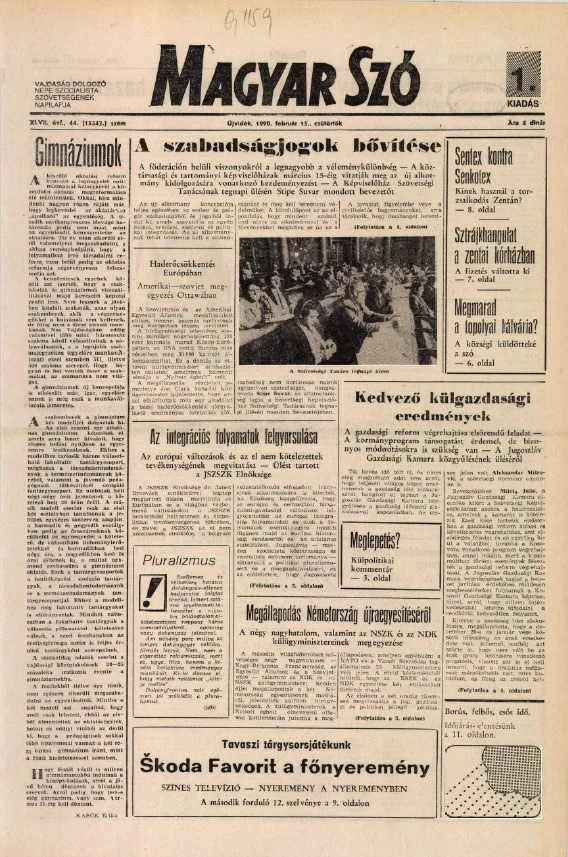 Magyar Szó, 47. évf. 1990. február 15. 44. sz. 1–16. oldal