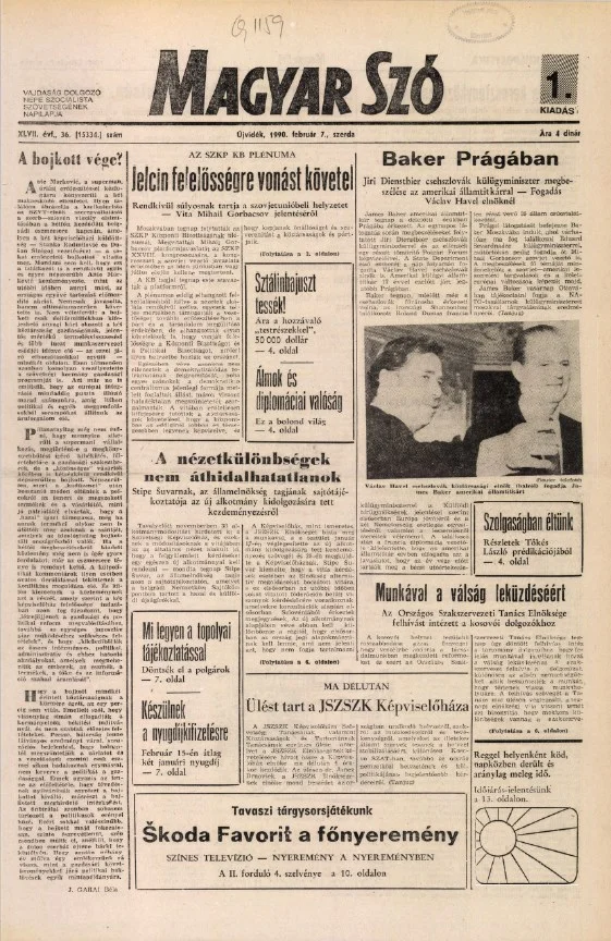 Magyar Szó, 47. évf. 1990. február 7. 36. sz. 1–20. oldal