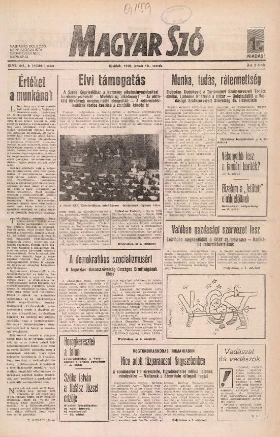 Magyar Szó, 47. évf. 1990. január 10. 8. sz. 1–20. oldal