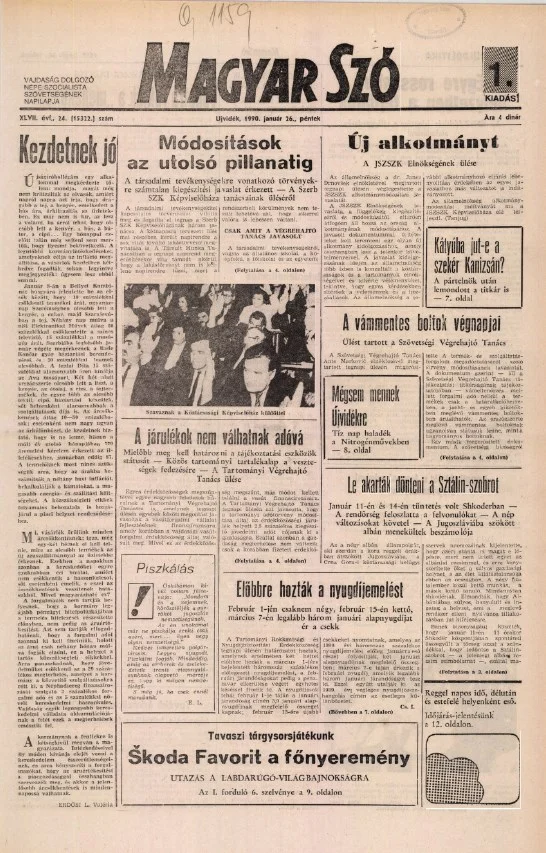 Kommunista. A Jugoszláv Kommunista Szövetség, a Szerb KSZ és a Vajdasági KSZ lapja, 22. évf. 1135. sz. 1-4. oldal