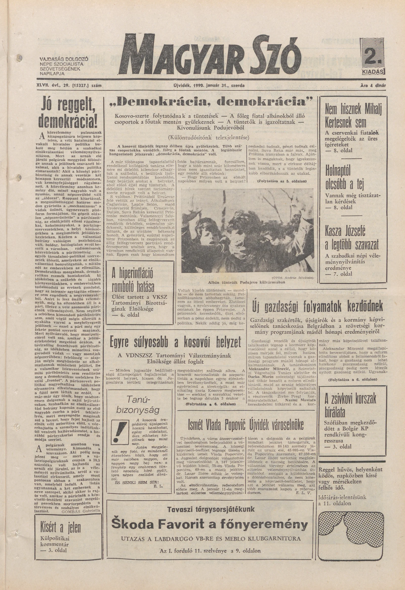 Magyar Szó, 47. évf. 1990. január 31. 29. sz. 1–20. oldal