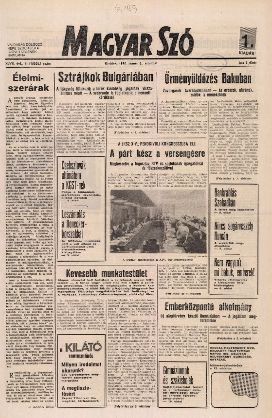 Magyar Szó, 47. évf. 1990. január 6. 4. sz. 1–24. oldal