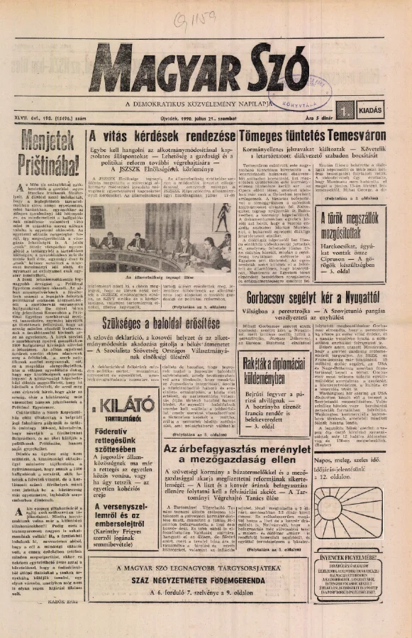 Magyar Szó, 47. évf. 1990. július 21. 198. sz. 1–24. oldal