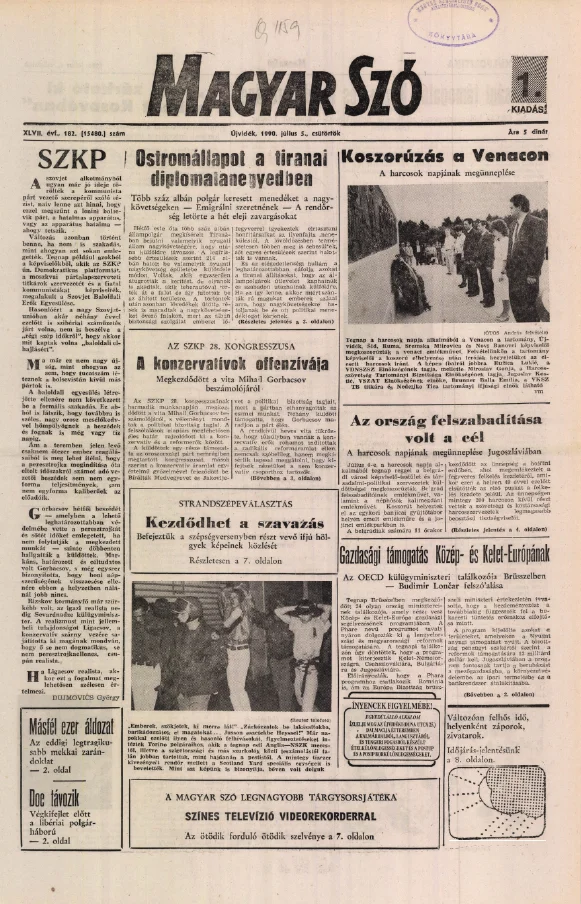 Magyar Szó, 47. évf. 1990. július 5. 182. sz. 1–16. oldal