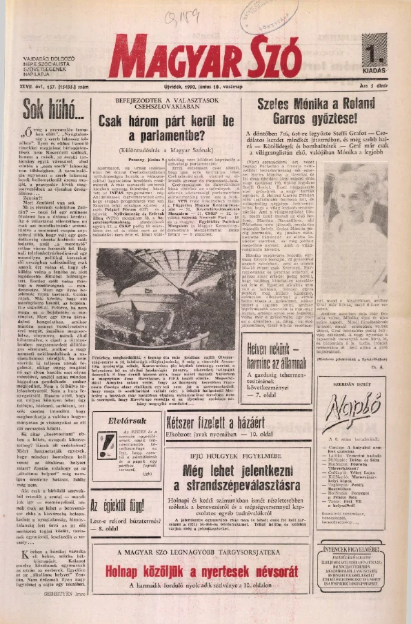 Magyar Szó, 47. évf. 1990. június 10. 157. sz. 1–32. oldal