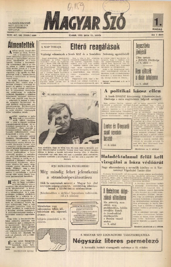 Magyar Szó, 47. évf. 1990. június 13. 160. sz. 1–20. oldal