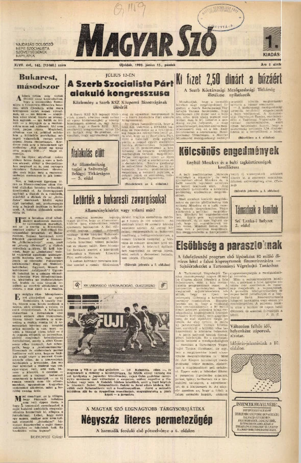 Magyar Szó, 47. évf. 1990. június 15. 162. sz. 1–20. oldal