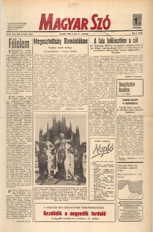 Magyar Szó, 47. évf. 1990. június 17. 164. sz. 1–32. oldal