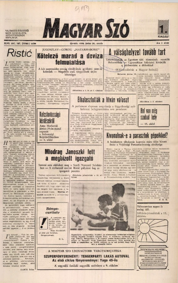 Magyar Szó, 47. évf. 1990. június 20. 167. sz. 1–20. oldal