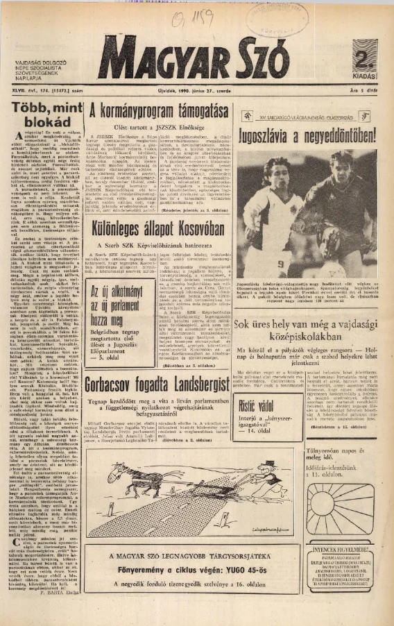 Magyar Szó, 47. évf. 1990. június 27. 174. sz. 1–20. oldal