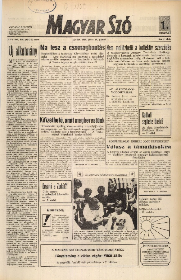 Magyar Szó, 47. évf. 1990. június 29. 176. sz. 1–20. oldal