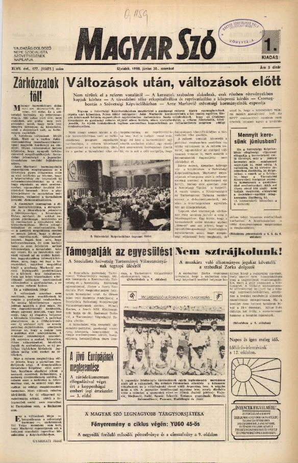 Magyar Szó, 47. évf. 1990. június 30. 177. sz. 1–24. oldal