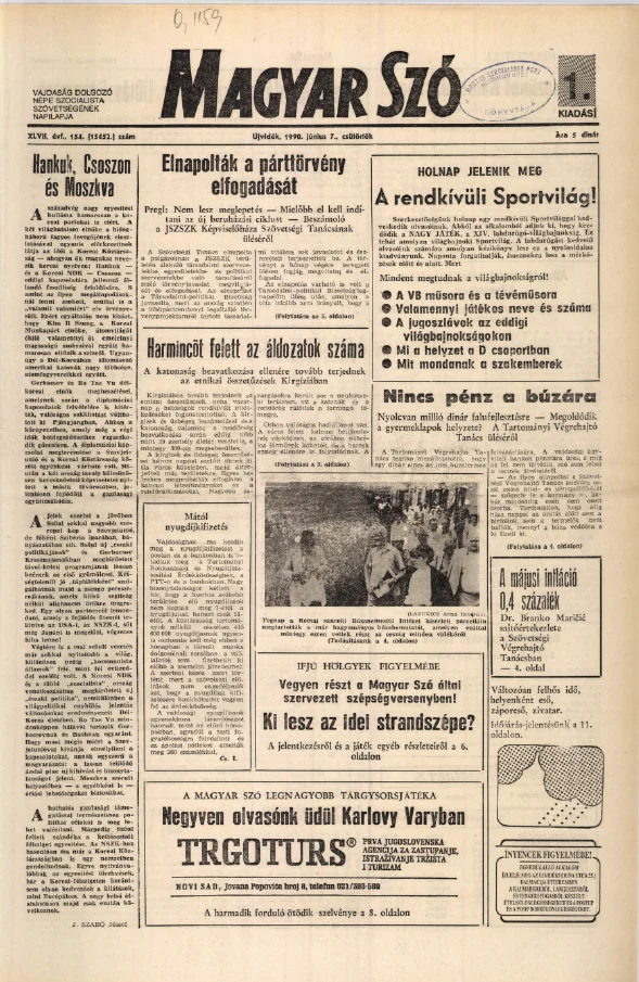 Magyar Szó, 47. évf. 1990. június 7. 154. sz. 1–16. oldal