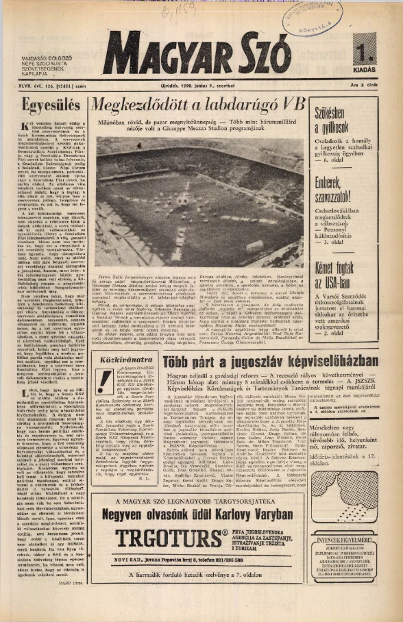 Magyar Szó, 47. évf. 1990. június 9. 156. sz. 1–24. oldal