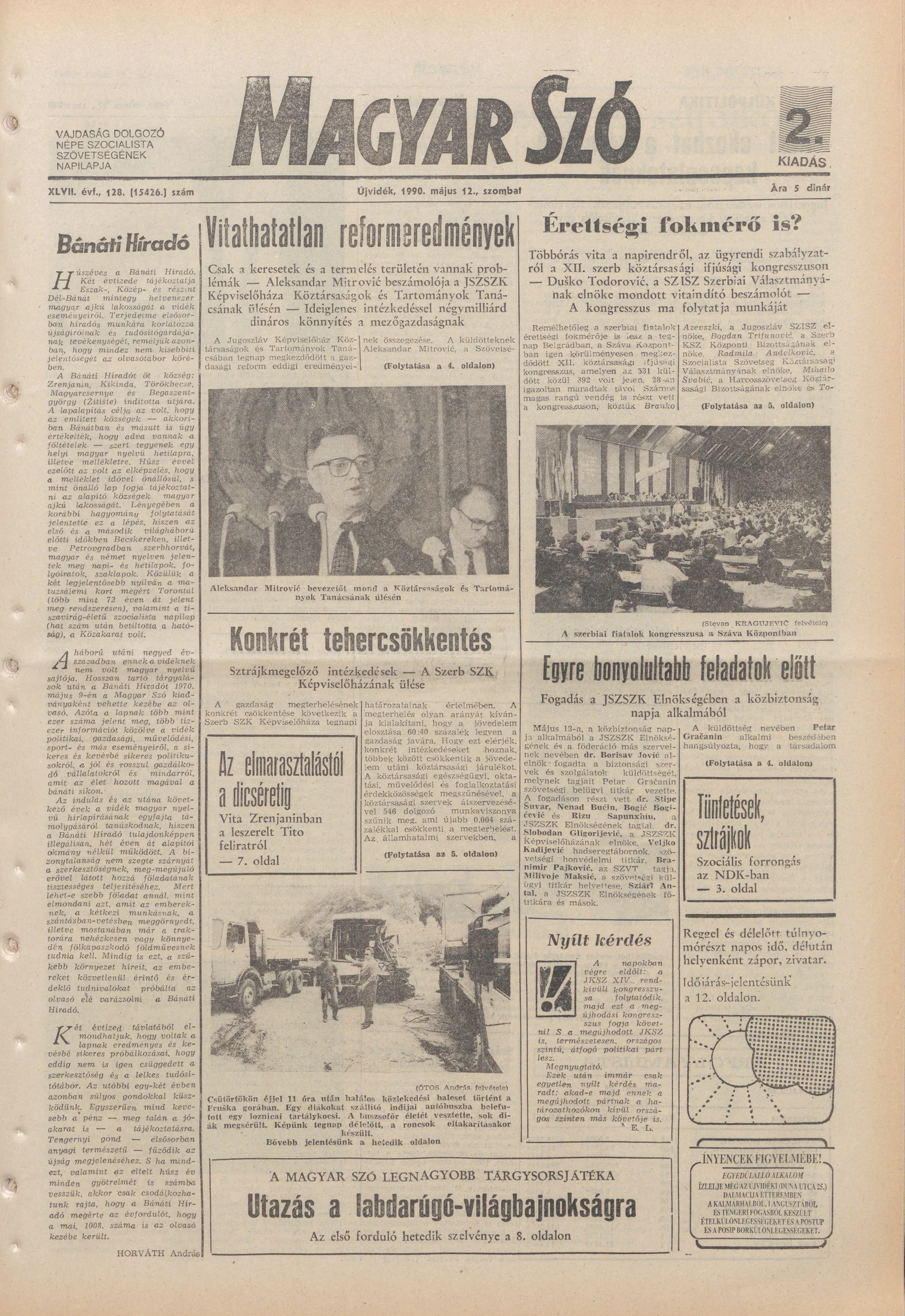 Magyar Szó, 47. évf. 1990. május 12. 128. sz. 1–24. oldal