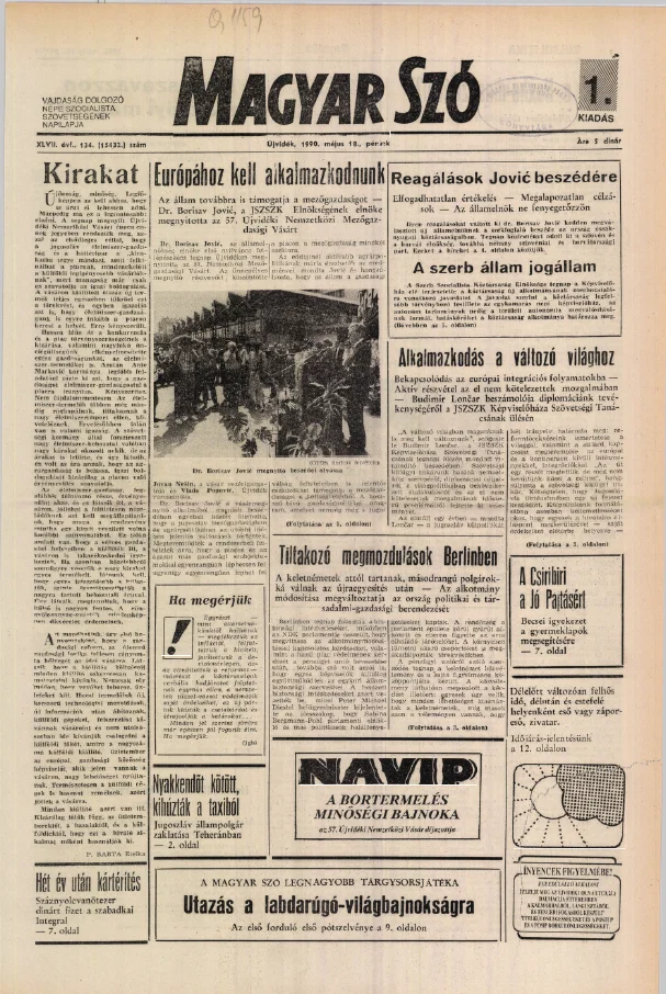 Magyar Szó, 47. évf. 1990. május 18. 134. sz. 1–24. oldal