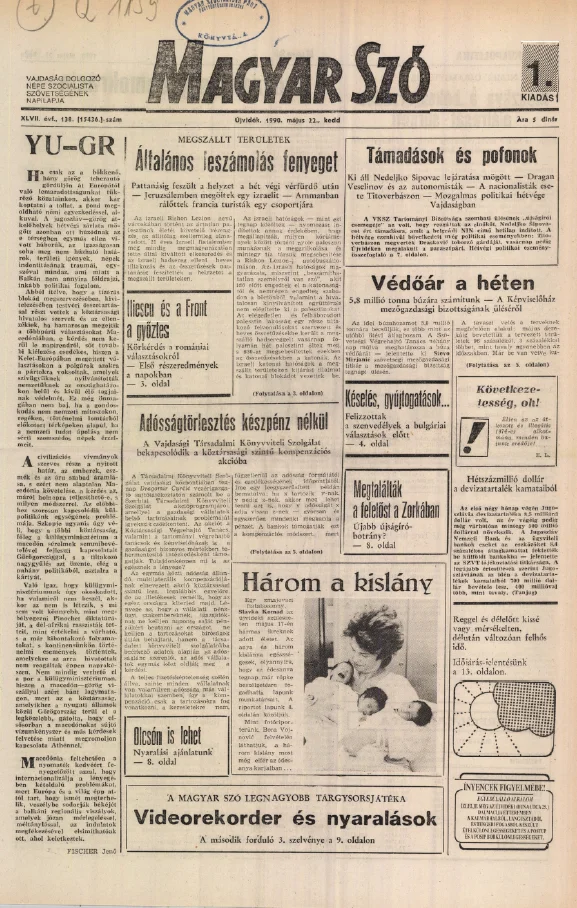 Magyar Szó, 47. évf. 1990. május 22. 138. sz. 1–24. oldal