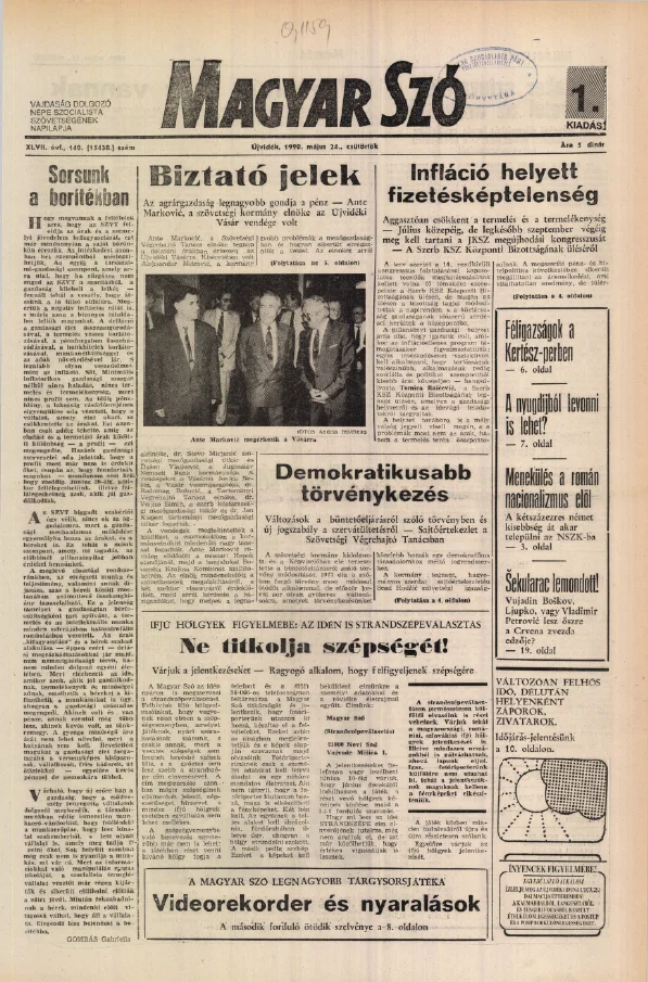 Magyar Szó, 47. évf. 1990. május 24. 140. sz. 1–20. oldal