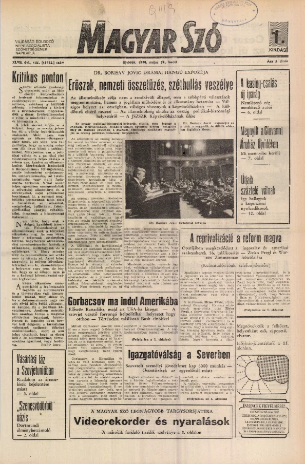 Magyar Szó, 47. évf. 1990. május 29. 145. sz. 1–20. oldal