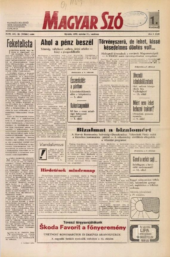 Magyar Szó, 47. évf. 1990. március 11. 68. sz. 1–36. oldal
