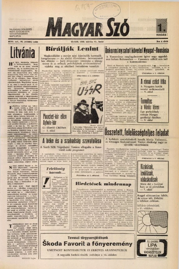 Magyar Szó, 47. évf. 1990. március 13. 70. sz. 1–20. oldal
