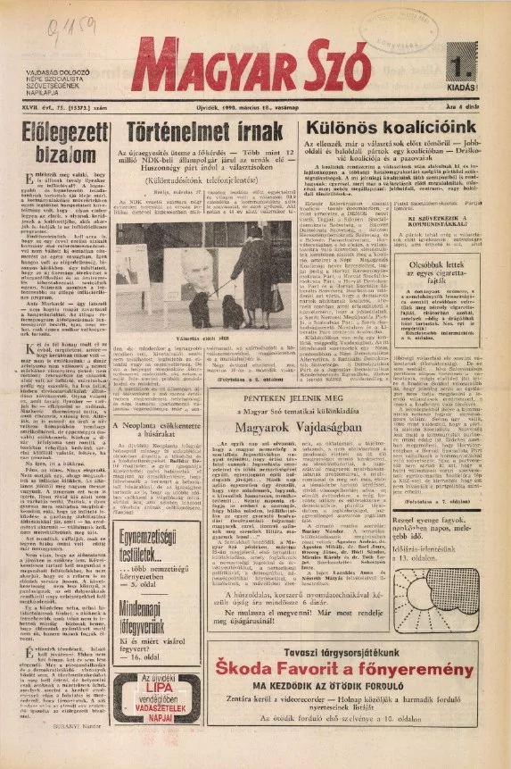 Magyar Szó, 47. évf. 1990. március 18. 75. sz. 1–36. oldal